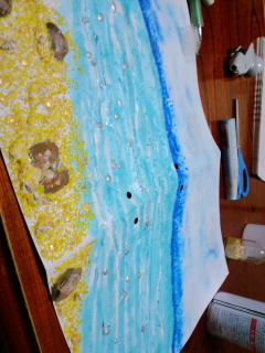 文字は赤いマニキュアで書いた上に別色の星の砂ぽろぽろとか。